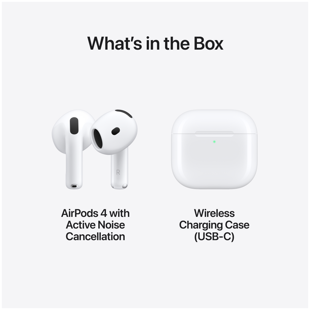• ACTIVE NOISE CANCELLATION — AirPods 4 with Active Noise Cancellation help reduce outside noise before it reaches your ears, so you can immerse yourself in what you’re listening to.