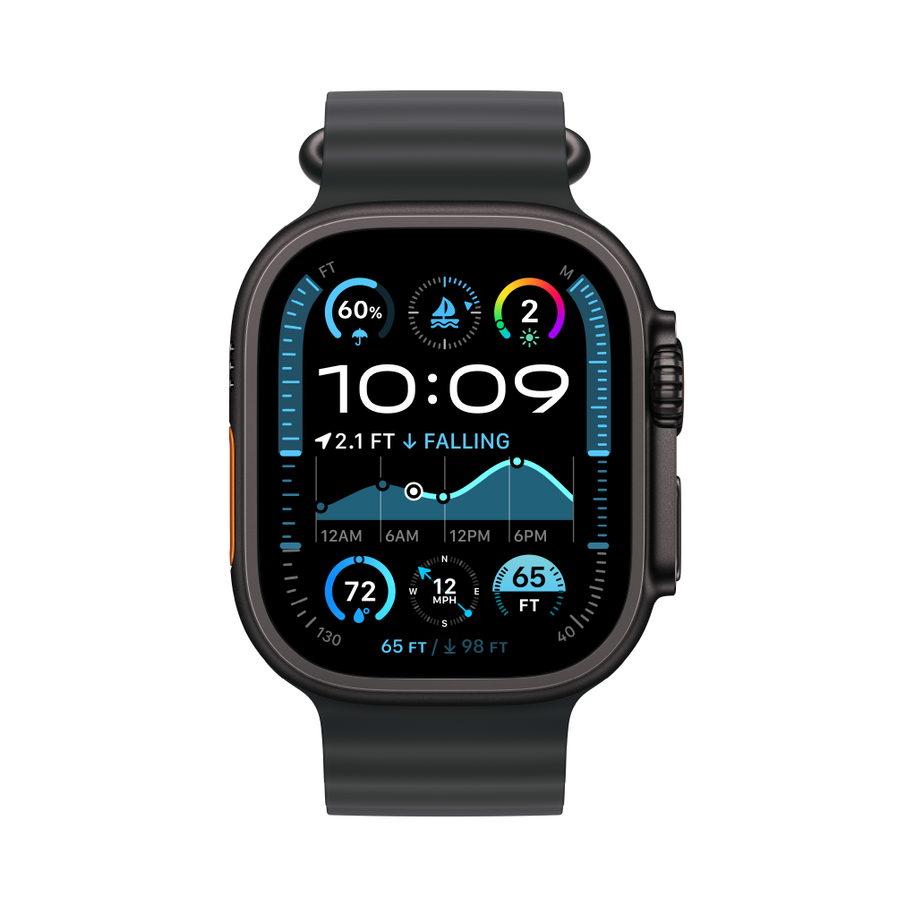 Apple Watch Ultra 2, the ultimate sports and adventure watch, is now available in a satin black titanium finish. It features multi-day battery life, precision dual-frequency GPS, and Apple’s brightest display ever. It also has a durable titanium case, sapphire front crystal, and customizable Action button.